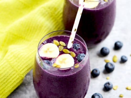 Ten koktajl jest fantastyczny dla osób szukających czegoś prostego, ale skutecznego. Jeśli przeszkadzają Ci koktajle, które mają 20 różnych składników, ten jest idealny dla Ciebie. Jogurt beztłuszczowy ma proteiny, a jagody dostarczą Ci mnóstwo antyoksydantów. Nasiona chia są bogatym źródłem kwasów tłuszczowych omega-3 oraz błonnika, który zwalczy stany zapalne i pomoże Ci poczuć się sytym.